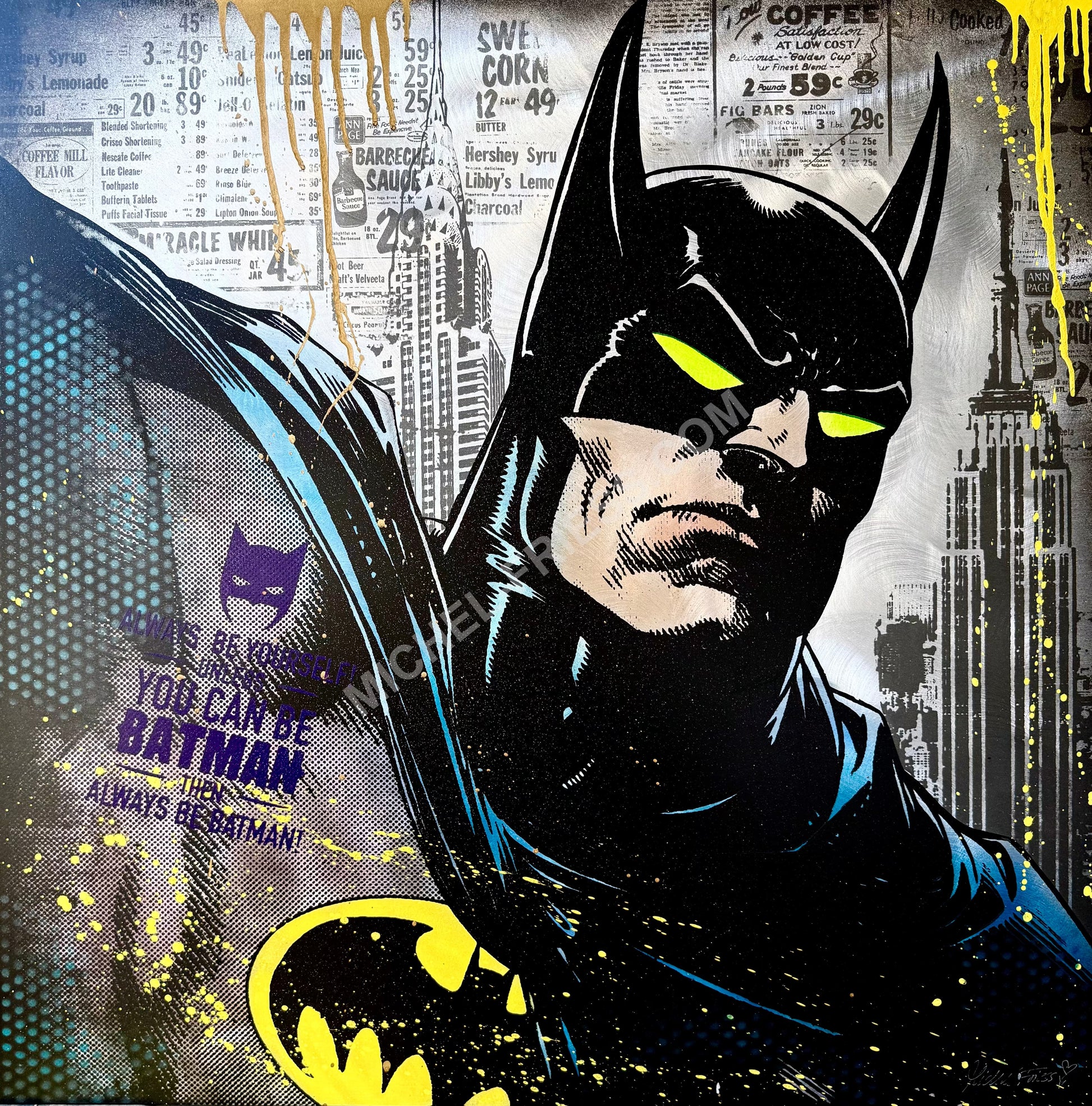 BATMAN NYC, Unikat 90x90cm auf handgebürstetem Aluminium 2mm