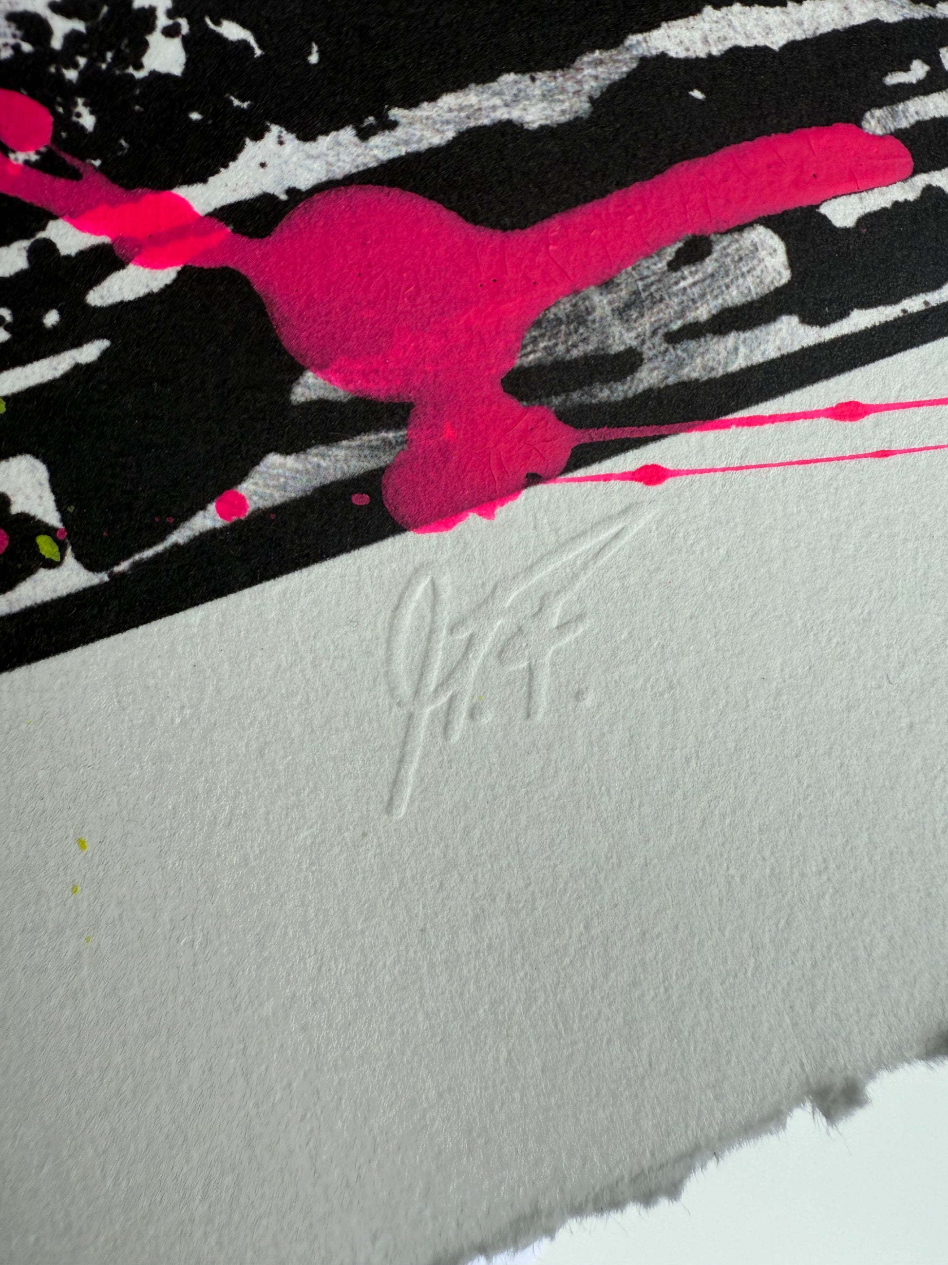 In der edlen Form des hochwertigen Pigmentdrucks auf schwerem Büttenpapier erfährt diese Street-Art-Ästhetik eine besondere Aufwertung – roh und gleichzeitig edel, laut und doch fein komponiert. Ein Werk, das nicht nur den Puls der Stadt, sondern auch die Essenz der Pop Art in sich trägt.